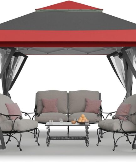 13×13 Pop Up Gazebo, Canopy Tent, Gazebos on Clearance – Outdoor Gazebo for Backyard & Patio Furniture – Pop Up Tent with Wheeled Cover Bag (Red & Grey)