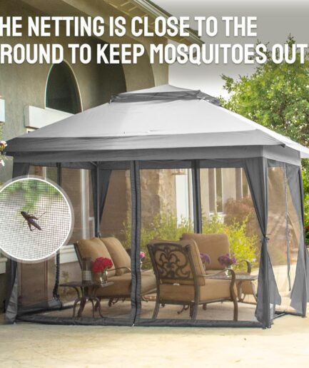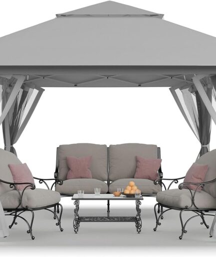 13×13 Pop Up Gazebo, Canopy Tent, Gazebos on Clearance – Outdoor Gazebo for Backyard & Patio Furniture – Pop Up Tent with Wheeled Cover Bag (Grey)