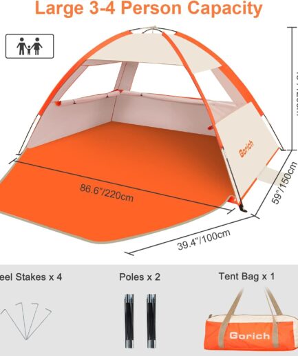 Beach Tent Sun Shelter for 3/4-5/6-7/8-10 Person with 50+ UV Protection, Lightweight & Easy Setup Beach Shade Canopy, Portable Beach Shade Tent Beach Cabana