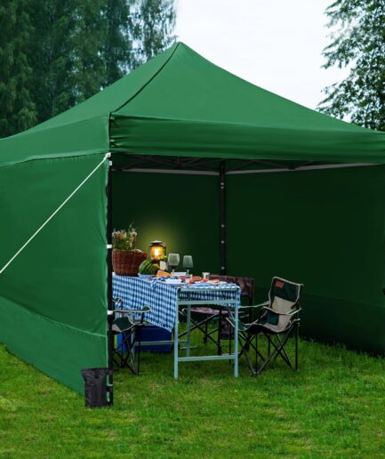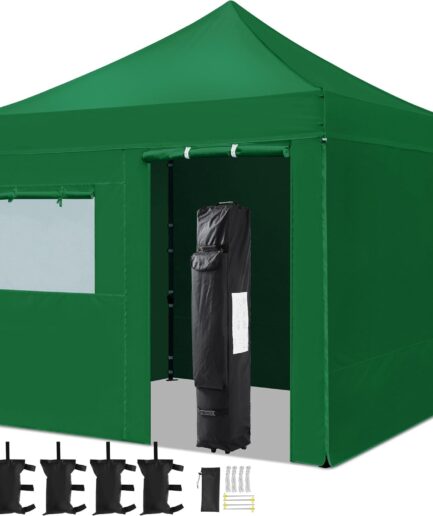 10×10 Pop Up Commercial Canopy Tent with 4 Removable Sidewalls, Sandbags, Stakes & Ropes, Waterproof Instant Canopies for Wedding Party Commercial Event Pavilion, Dark Green