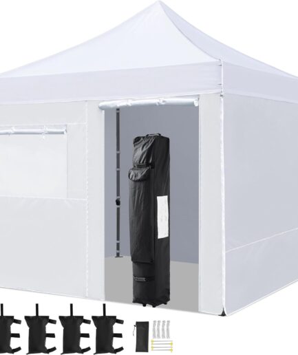 10×10 Pop Up Commercial Canopy Tent with 4 Removable Sidewalls, Sandbags, Stakes & Ropes, Waterproof Instant Canopies for Wedding Party Commercial Event Pavilion, White