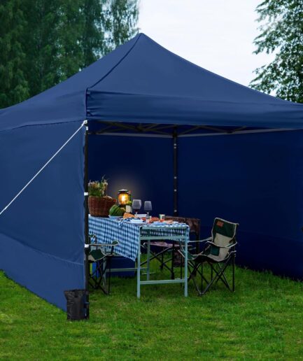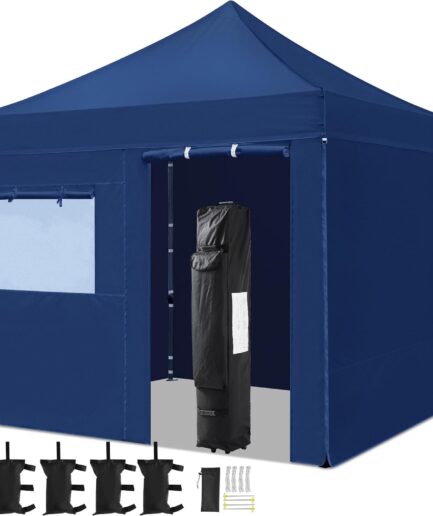 10×10 Pop Up Commercial Canopy Tent with 4 Removable Sidewalls, Sandbags, Stakes & Ropes, Waterproof Instant Canopies for Wedding Party Commercial Event Pavilion, Navy Blue