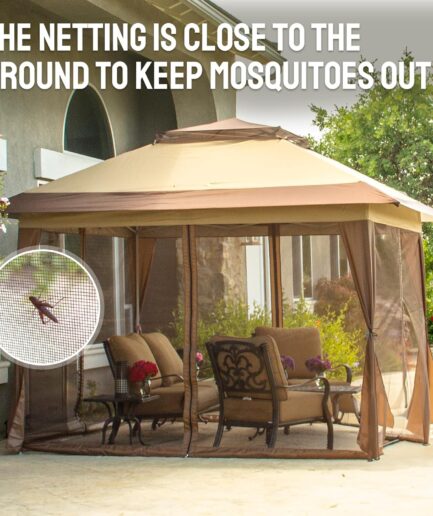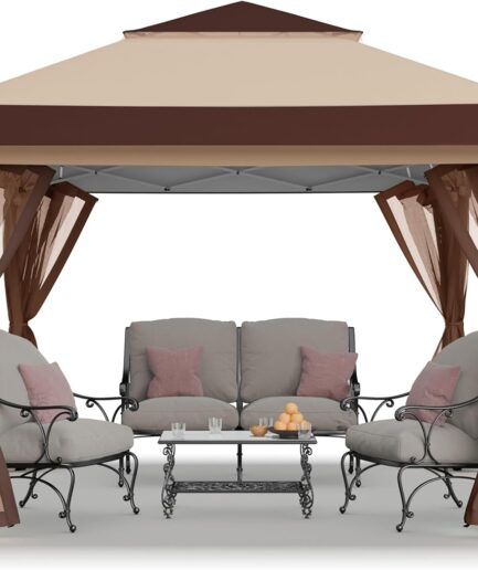 13×13 Pop Up Gazebo, Canopy Tent, Gazebos on Clearance – Outdoor Gazebo for Backyard & Patio Furniture – Pop Up Tent with Wheeled Cover Bag (Beige & Coffee)