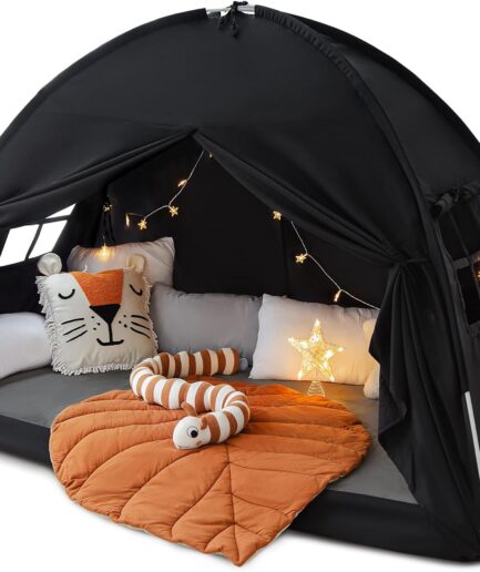 Twin Size Bed Canopy Bed Tents Dream Tent on Bed Privacy Space Blackout Sleeping Tents Indoor Breathable Portable Cottage Drafty Room Floor Bed Tents (Black)