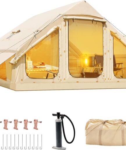 Inflatable Tents for Camping, Blow Up Tent with Hand Pump, Easy Setup Inflatable Hot Tent with Stove Jack, Waterproof Oxford Air Glamping Tents for Camping Adult 4-6 Person