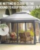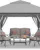 - [UPGRADE FABRIC]: Rugged 150D silver coated canopy fabric provides 50+ UV protection. The CPAI-84 rated flame resistant fabric is water repellant and includes waterproof sealing tape to protect against water pooling in wet conditions.The removable netting-screen included to help keep pests away.