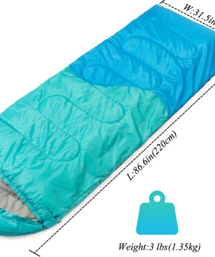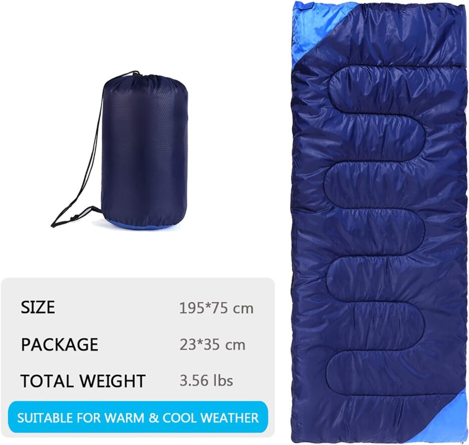 - WATERPROOF MATERIAL- The surface material of the camping sleeping bag is waterproof and breathable polyester fabric, and the filling material is hollow cotton, which is soft and comfortable.