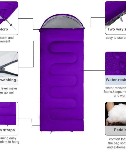 • This sleeping bag is made of polyester and filled to keep the inside of the sleeping bag warm all the time. The inner fabric is filled with double microfiber, which is very soft.