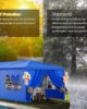 - All-Weather Canopy: Crafted from superior polyethylene material, the party tent canopy boasts waterproofing and sun-blocking capabilities. It effectively shields you from up to 80% of harmful UV rays, ensuring protection against all weather conditions. Once set up, the party tent stability is further fortified with robust stakes, secure connector joints, and extensive wind ropes